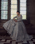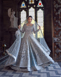 • Hand embellished tissue lehenga