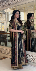 Zainab by Haris Shakeel is a timeless vision of grace and grandeur. Draped in a classic black hue, this flowing silhouette exudes effortless charm and regal allure. Rich accents and deep tones weave together to create a look that’s both commanding and feminine.