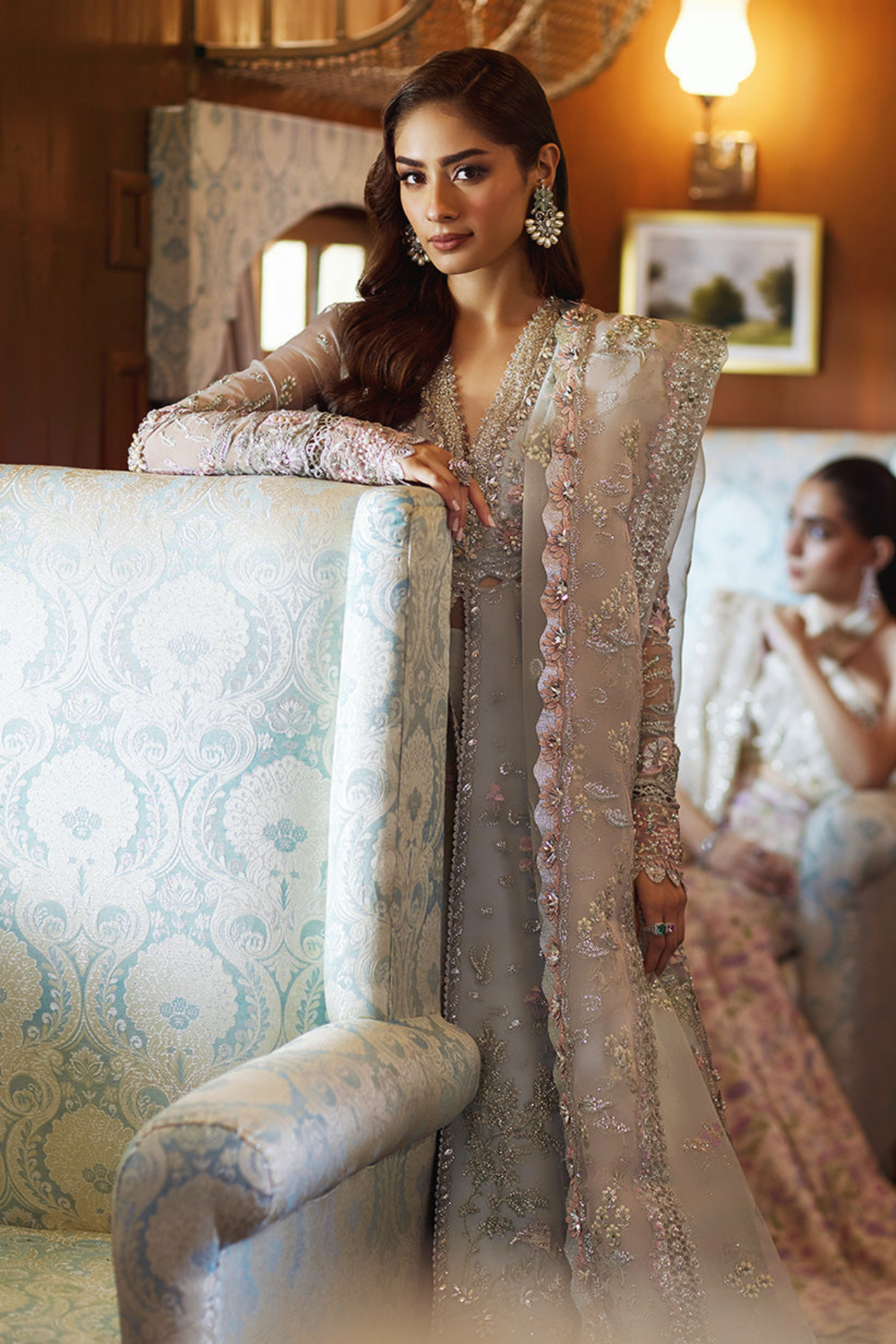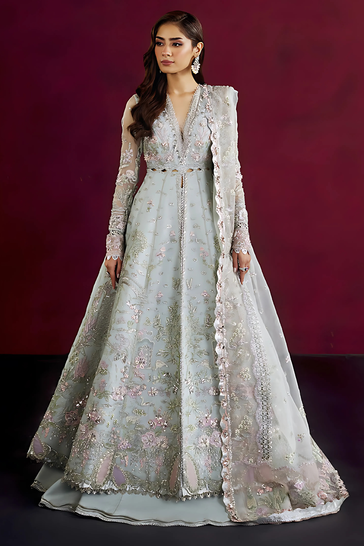 Dive into the serene beauty of Kyla, an unstitched designer outfit inspired by the delicate wonders of marine life. Crafted on a soft pastel aqua blue canvas, this ensemble boasts intricate multi-color embroidery, shimmering sequins, and enchanting tilla work. The organza shirt, adorned with hand embellishments of beads and stones, exudes timeless elegance and grace.