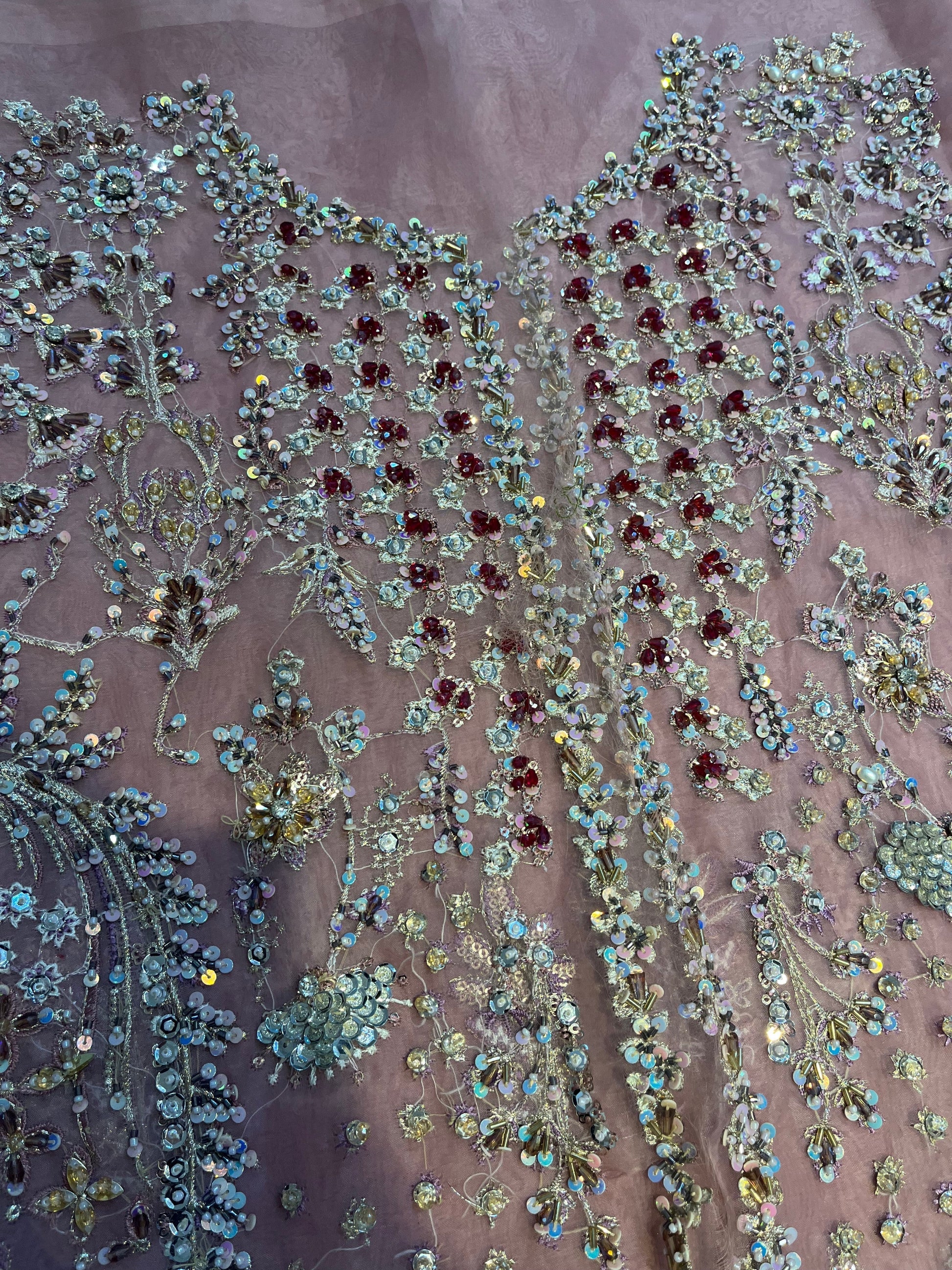 - Embroidered Hand Embellished Front Right Panel (Organza) 1Pc