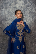 – Organza aesthetically appealing motifs cut design is portrayed on this classy ensemble rendered in a hue of Navy Blue