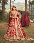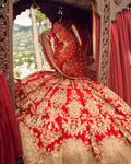 Description: A sumptuously hand worked red lehnga choli set wrought using zardozi, dabka, naqshi and embellished with sequins and resham.Handcrafted with meticulous care, our pieces have a lot of diligence and love invested in them. The exquisite craftsmanship requires laborious hours.